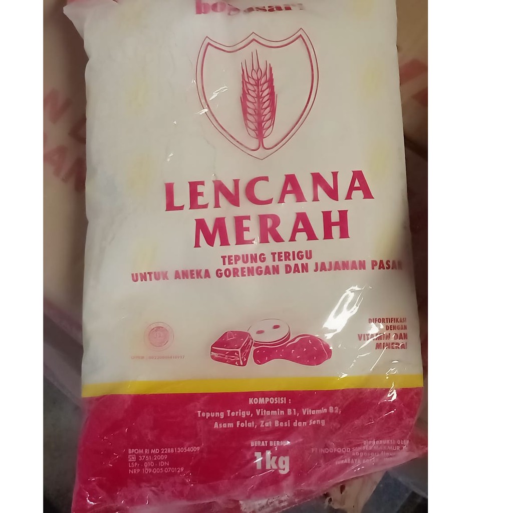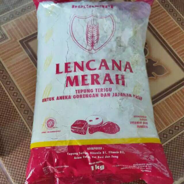 Bahkan hasil gorengan pun akan bertekstur garing dan terasa lebih renyah. Tersedia dalam dua kemasan 1 kg dan juga 25 kg. Tepung terigu Lencana Merah adalah produk dari bogasari yang khusus untuk jajanan pasar dan gorengan.